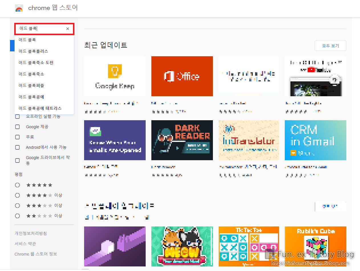왼쪽 상단 검색창에 '애드 블록'을 입력해 검색해줍니다.