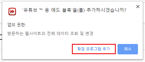 [확장 프로그램 추가]를 눌러 마무리 해줍니다.