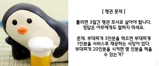 펭귄 문제는 이런 이미지 형태로 SNS나 카톡으로 많이 돌아다니고 있고,