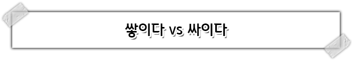 '쌓이다'와 '싸이다'는 발음이 똑같기 때문에 어려운 단어가 아님에도 많은 사람들이 쉽게 헷갈리곤 합니다.